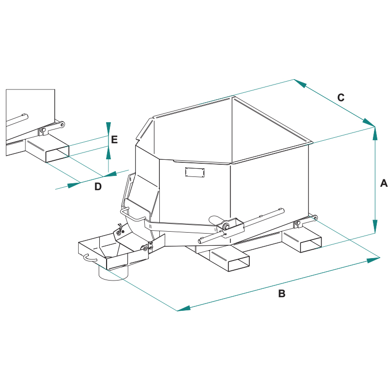 MCE-TBenne à béton avec base fourchable et tuyau pour chariot élévateur ou télescopique
