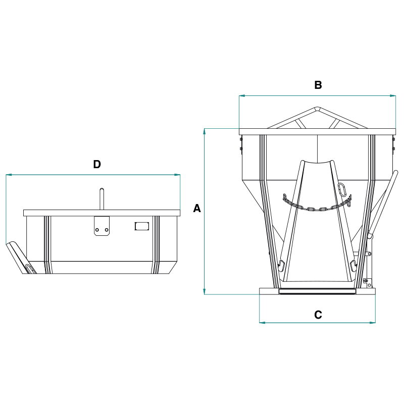 Le modèle de benne à béton CL est conçu pour optimiser le processus de chargement avec la bétonnière grâce à une hauteur de bord réduite facilitant le chargement. Équipée d'une ouverture à déchargement central bivalve actionnable par levier pour un dosage précis du béton, la benne CL est également munie d'un canal repliable pratique pour le déchargement latéral. Cette combinaison offre une grande polyvalence pour orienter le flux de béton, particulièrement utile dans les situations nécessitant un coulage précis dans des espaces restreints et difficiles d'accès. Disponible en différentes capacités et tailles comme spécifié dans le tableau ci-dessous, le modèle CL s'adapte aux besoins spécifiques de chaque chantier. Vous pouvez demander la version avec